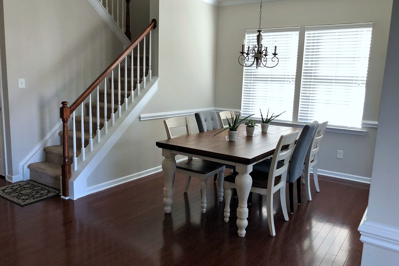 This is a photo heavy post...so you've been warned. I feel good with the progress we've made in our house in the 5 weeks or so we've been there. I'm still struggling a bit with the living room. More on that below. First, I'll show you the dining room area as it is now.